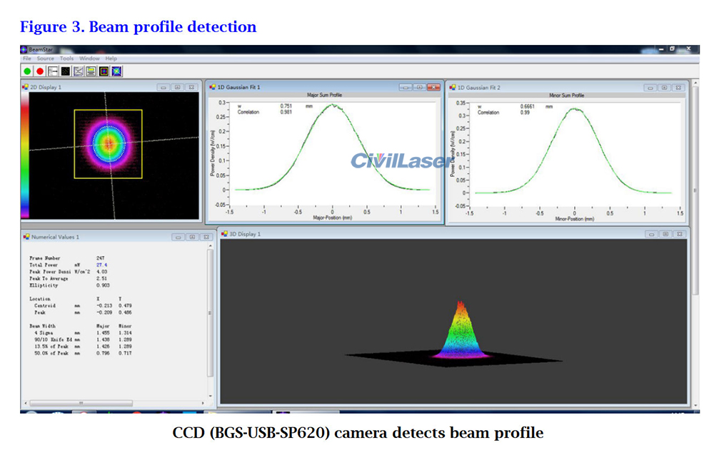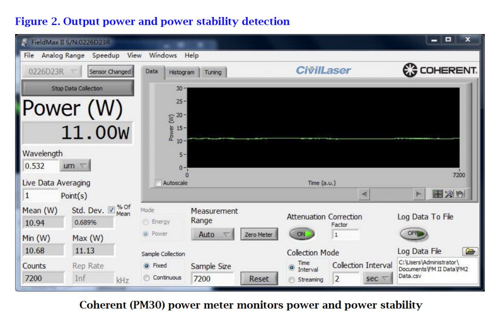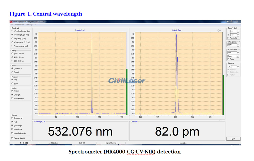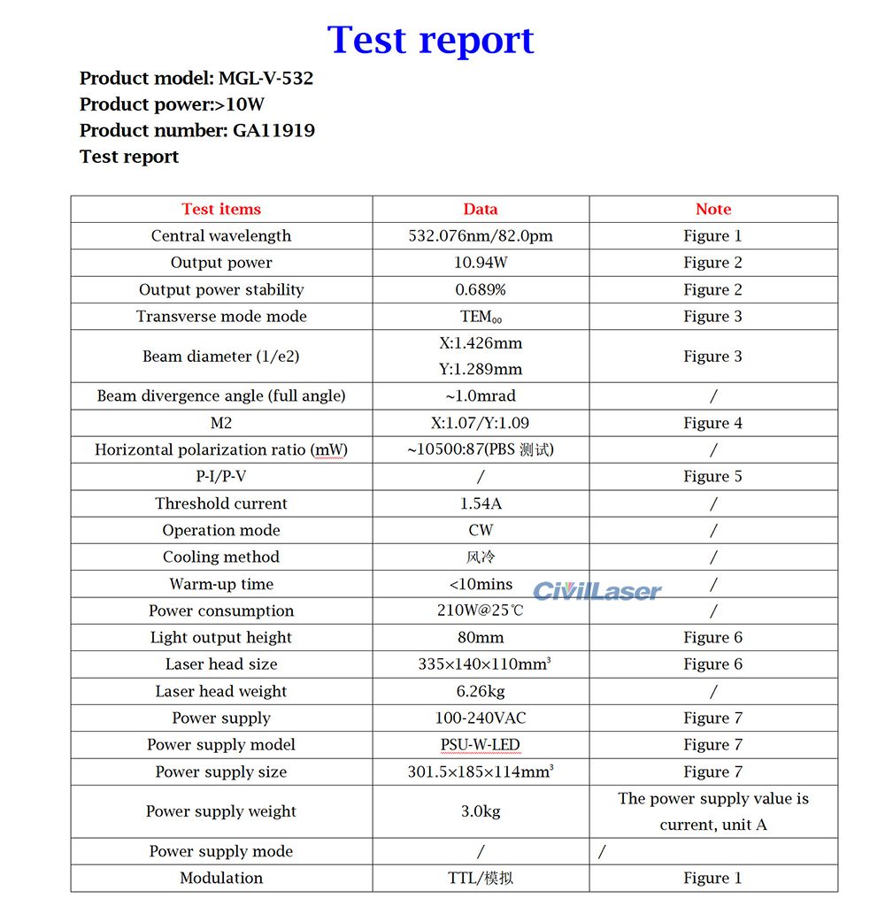 The test report of this 532nm 10W high-power DPSS laser system.