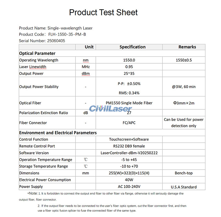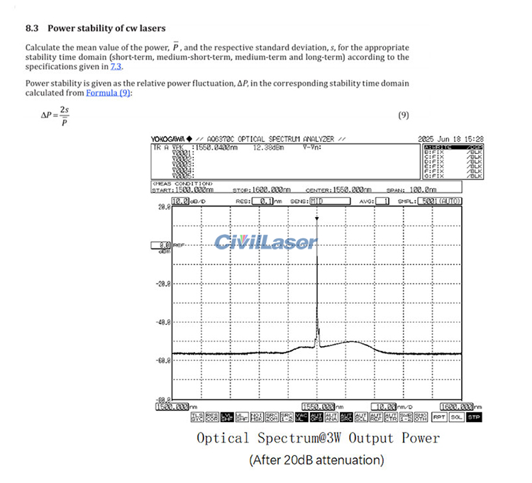 The test data report of this 1550nm fiber laser.